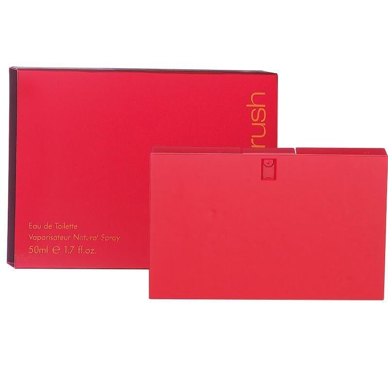 Gucci Rush is a very attractive and recognizable fragrance, impulsive and irresistible, just like love at first sight. The name of the fragrance "Rush" reminds of stimulative drug, very widespread in America during 1980s. The intensive red bottle has the shape of a video cassette tape, a very unusual and modern design. The fragrance is composed like a luscious exotic floral cocktail: Californian gardenia, South African freesia, jasmine and Turkish rose. Corriander, vanilla and patchouli emphasize the oriental character and uniqueness of this fragrance.
