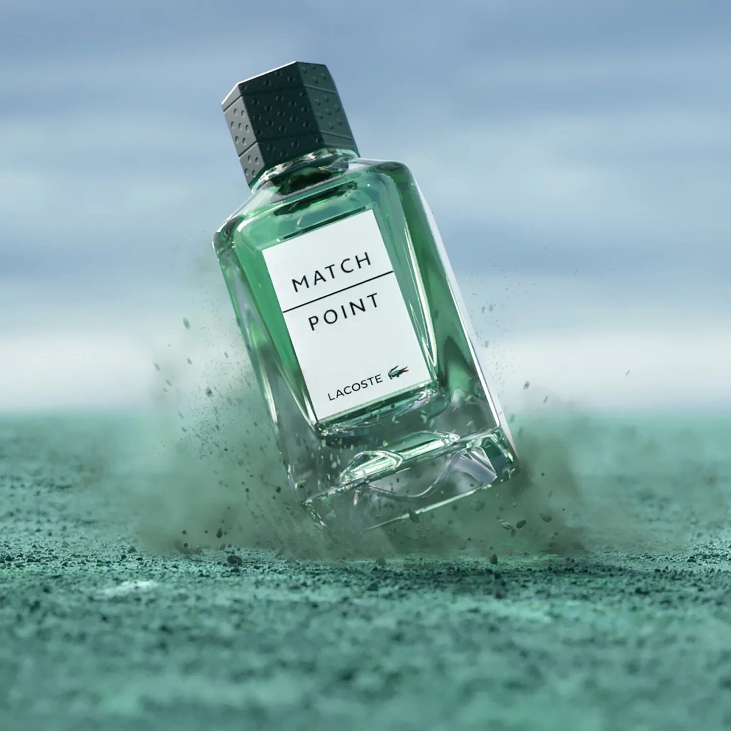Match Point fragrance: when emotion propels you to action. Breathe in the thrilling freshness of this new masculine Eau de Toilette by Lacoste, an explosive fusion of two contrasting accords. The green energy of basil and gentian bitterness combine in a breathtaking freshness. The thrilling black elegance of woody vetiver brings strength and intensity.